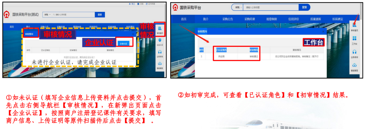 ( 1 )进入企业账号后,点击右侧【审核情况】
