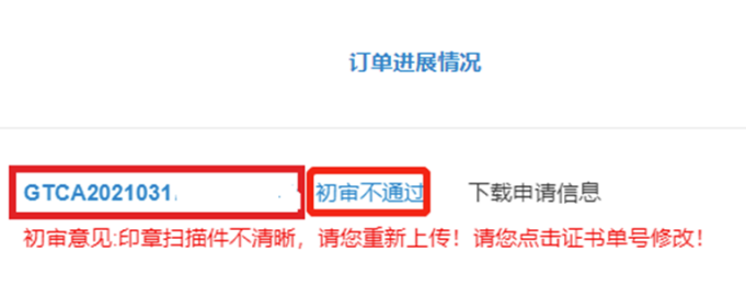 2.6 收到纸质资料后,中铁数学证书认证中心会对收到 的纸质资料及时审核,如复审未通过,系统会提示审核未通 过。请用户按审核意见重新邮寄纸质资料。