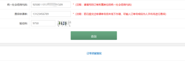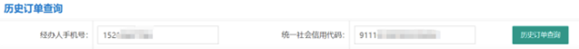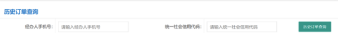 输入原经办人手机号、统一社会信用代码后点击“历 史订单查询”,选择对应订单点击“回填申请表”,原订 单基本信息、发票信息、经办人信息自动回填,如有变 更,手动修改即可。
