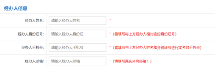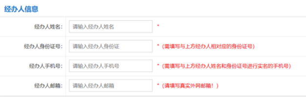 经办人的信息一定要填写真实信息,手机号查询证书办 理进度和历史订单时使用,邮箱用于接收电子发票文件。