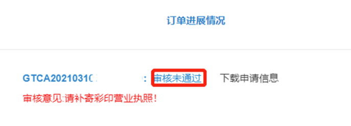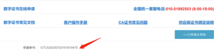 2.11 数字证书的申请提交后,用户可查询订单进展情况, 并下载已提交的申请信息《数字证书申请表》以便留存。