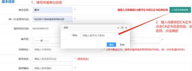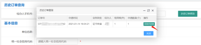 如无法进行历史订单查询,需重新填写待更新数字证书 对应的原单位基本信息。