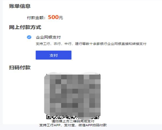 其中,采用扫码支付方式的,系统自动确认到账;采用 网银支付方式的,需由财务人员核对到账情况(流程增加 1 个工作日财务确认收款)。