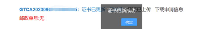 页面提示“数字证书更新成功”,代表证书已完成更新。