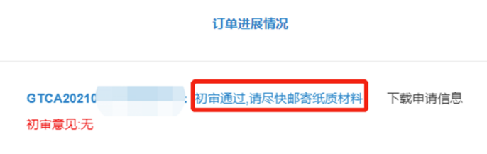 5.6 提交电子材料后,及时查询订单状态,初审通过后, 及时邮寄纸质材料。