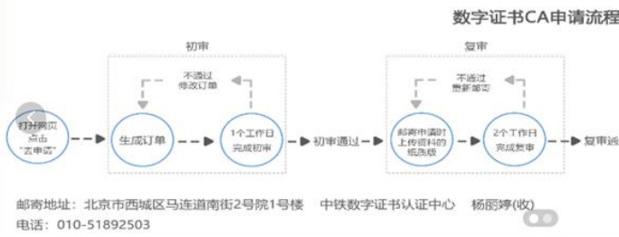 5.7 中铁 CA 对证书补办的纸质材料复审,材料无误后订 单审核通过。中铁 CA 在 24 小时内将原证书吊销并把原证书 的吊销状态发布至中铁 CA 证书吊销列表 CRL 公布地址: www.sinorailca.com,以供查询。审核通过后请尽快付款,财 务确认收款后的 2 个工作日内邮寄出申请补办的数字证书, 可在订单查询页面查看物流信息。