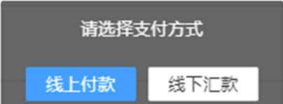 2.8 点击“去付款”后,会提示线上付款或线下汇款。其 中,线上付款是可以使用企业银行支付或扫二维码支付,扫 二维码可使用个人微信或支付宝扫码支付。点击线下汇款后 出现汇款信息,线下汇款需上传缴费凭证后,1 个工作日进 行财务确认收款。线上付款为银行自动确认收款,推荐用户 使用“线上付款”方式支付。